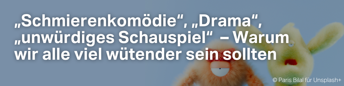 Hallo Kolleg*in,gerade noch sind wir mit dem Schlachtruf „2026 wird alles besser!“ ins neue Jahr gestartet. Da haben wir uns den Dreck von 2025 noch nicht ganz aus den Augen gerieben und schon: Huch, was ist denn da in Venezuela los? In Minneapolis? Und im Iran? Huch, kein Strom in Berlin und der Regierende spielt Tennis. Und was klöppeln sich die Parteien auf ihren Jahresauftaktklausuren zusammen, erscheinen da etwa neue Zerwürfnisse am Horizont der schwarz-roten Koalition? Herrje. Ich dreh mich nochmal um. Etwas ist Dir in der politischen Berichterstattung sicher auch schon öfter aufgefallen: Da wimmelt es immer wieder von Wendungen wie „unwürdiges Schauspiel“, „Drama“, „Schmierenkomödie“ etc. pp. Wenn´s schmutzig wird, werfen Politiker*innen und Presse gerne großzügig mit Theateranalogien um sich. Das kommt nicht von ungefähr. Sollten wir als Theatermenschen uns von dieser Wortwahl beleidigt fühlen? Oder können wir sogar etwas Konstruktives für uns daraus ziehen? Ich hätte einen Vorschlag: